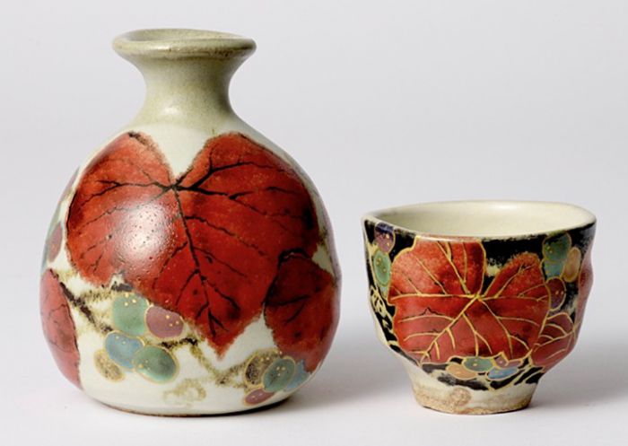 <陶芸家:古川隆久>陶器 釉彩野葡萄文盃/徳利