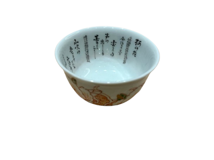 カップの内側に萬葉集から選ばれた5つの和歌が描かれた湯呑。器の形、外側の絵付け、内側見込みの極小の字などすべてにおいて妥協することなくつくられた逸品です。