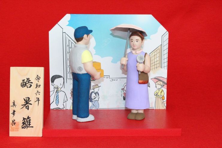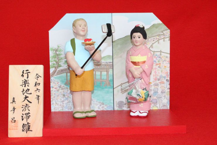 世の中に活気が戻ってきた2023 年。株価はバブル後の最高値を更新し、海外から観光客が押し寄せインバウンド景気も復活。侍ジャパンのWBC 優勝や阪神タイガースの日本一など、スポーツ界も大いに盛り上がりました。そのような世相を反映した6体の真多呂変わり雛を展示いたします。
