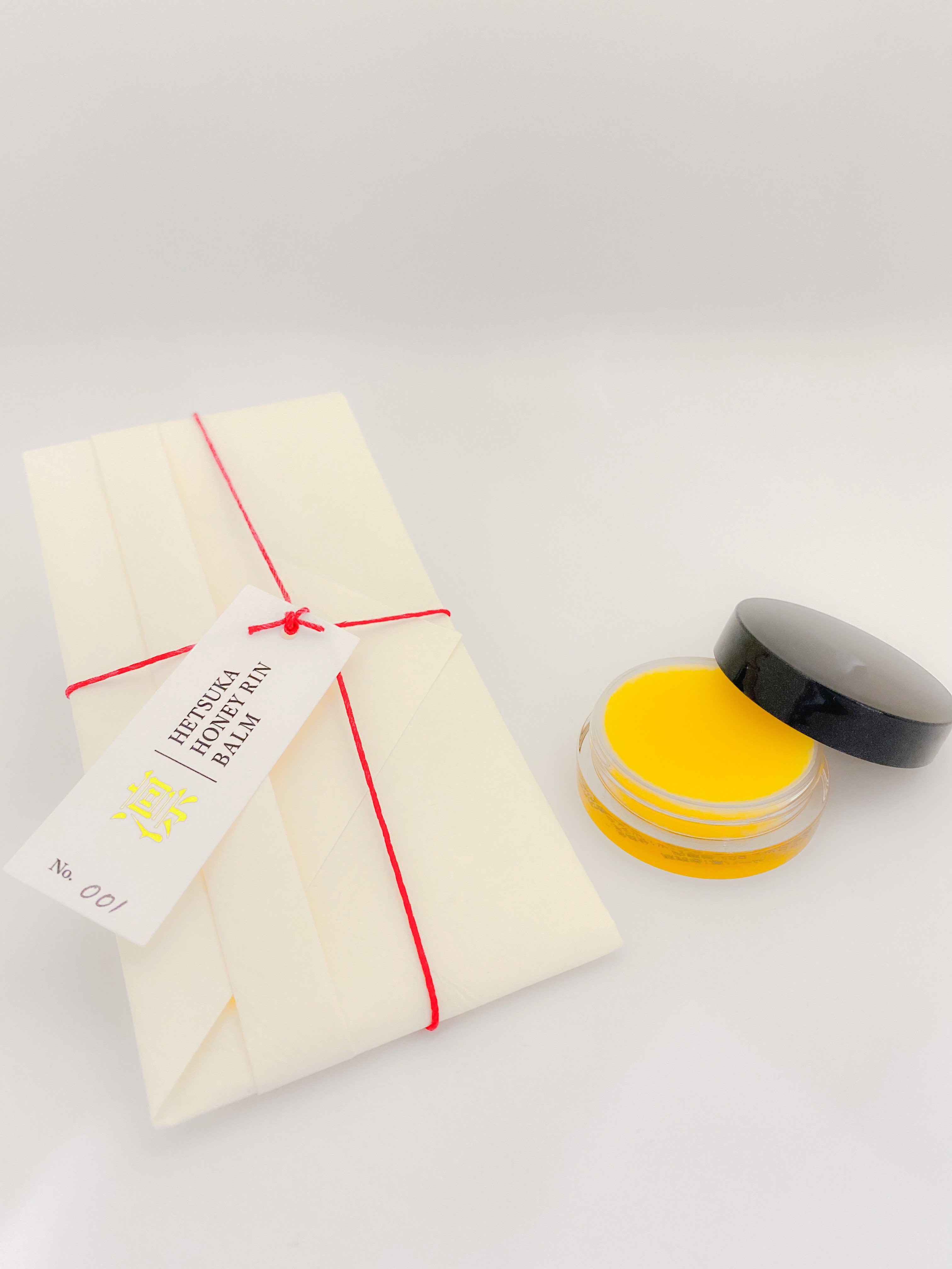 日本ミツバチの蜂蜜「凛」、蜜蝋、ツバキ種子油、ツボクサなど、全て鹿児島県産にこだわり配合。顔、髪の毛先、手肌、爪など気になる乾燥を潤し、リラックス効果のあるほうしょうの優しい香りが特徴です。