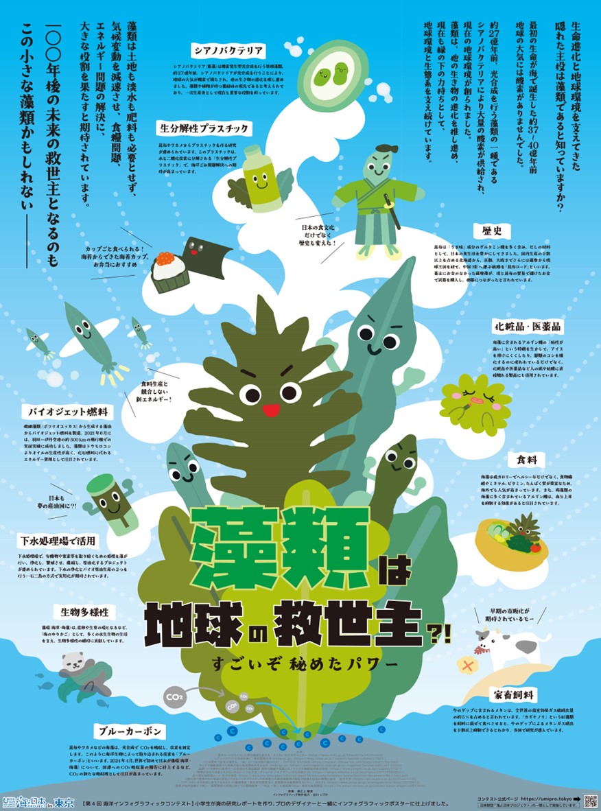 本コンテストは、夏休み期間中、全国の小学生が海洋問題に関する研究レポートをもとに、プロのデザイナーと共同で制作したインフォグラフィックポスターを展示し、未来へのメッセージを発信していくもので、9月21日(土)には東京ポートシティ竹芝にて発表コンテストを実施し、岸壁幼魚採集家の鈴木香里武さんと元テレビ東京アナウンサーの福田典子さんをMCに迎え、9人の小学生が自身の研究と作品を発表。最優秀賞をはじめとする受賞作品が決定し、全国各所にて展示予定となっています。